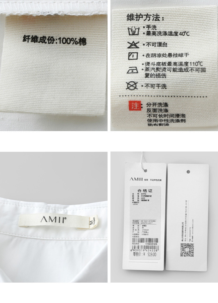 | 洗涤标准: | 悬挂晾干不可干洗不可漂白不可浸泡110℃以下垫布熨烫40℃以下手洗 |