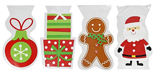 Set of 60 Christmas Cello/Cellophane/Loot Treat Bag w/Ties – 4 Holiday Designs!