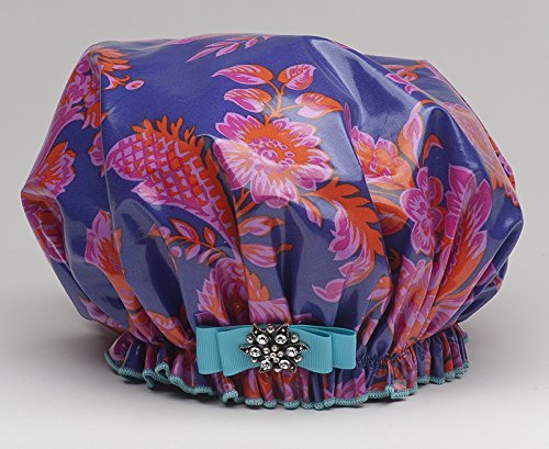 Dry Divas Designer Shower Cap For Women - Washable, Reusable - Large Cap With Vintage Jeweled Brooch (Rendezvous with U)
