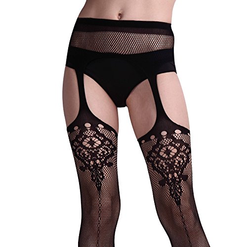 -. Feature : Bow Lace pattern, Stretchy material. 90% Nylon+10% Spandex / Elasticized waistband, Thigh-high design One Size fits US 4-12 / Package Includes: 1 x Pantyhose ( G-string is not included ) / Fishnet stockings is very elastic and durable. Every crochet is very delicate. They are plus size options / Heightening Waist design makes the wearer look more slim and show off the charm of the body
