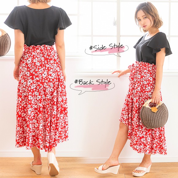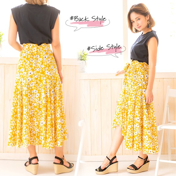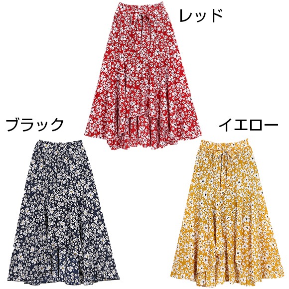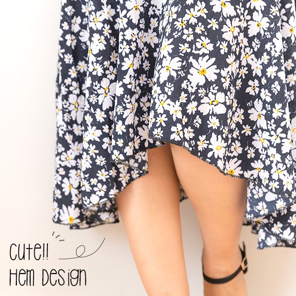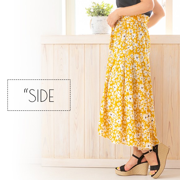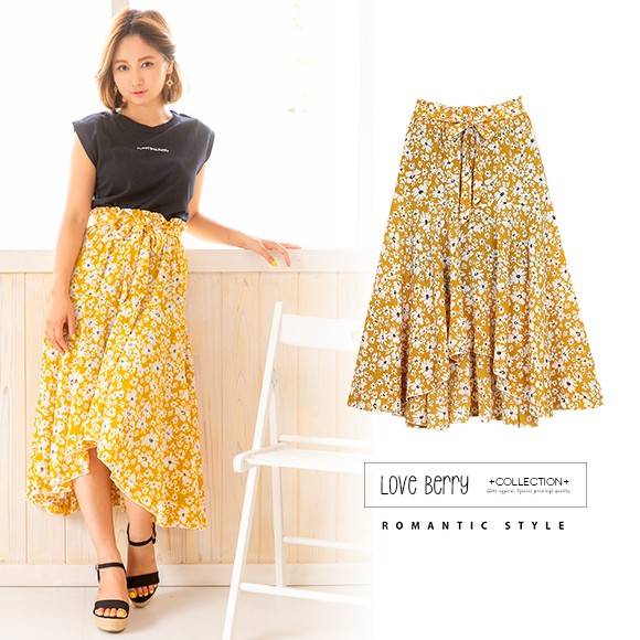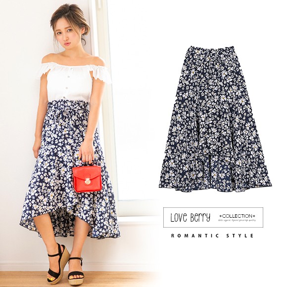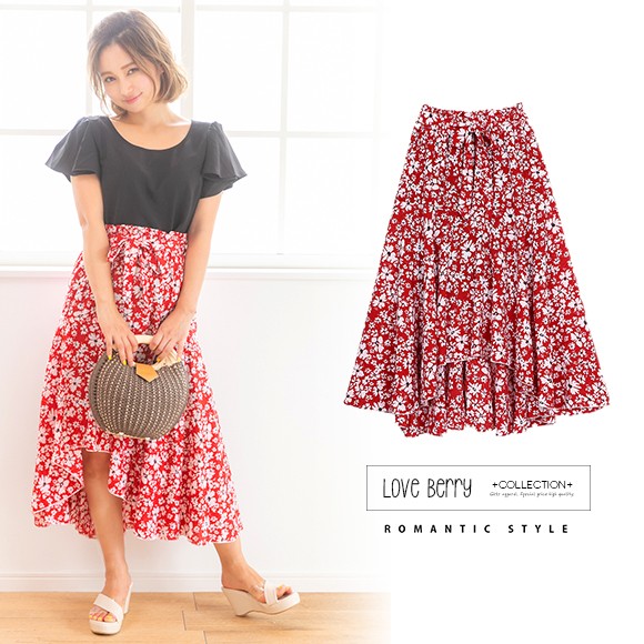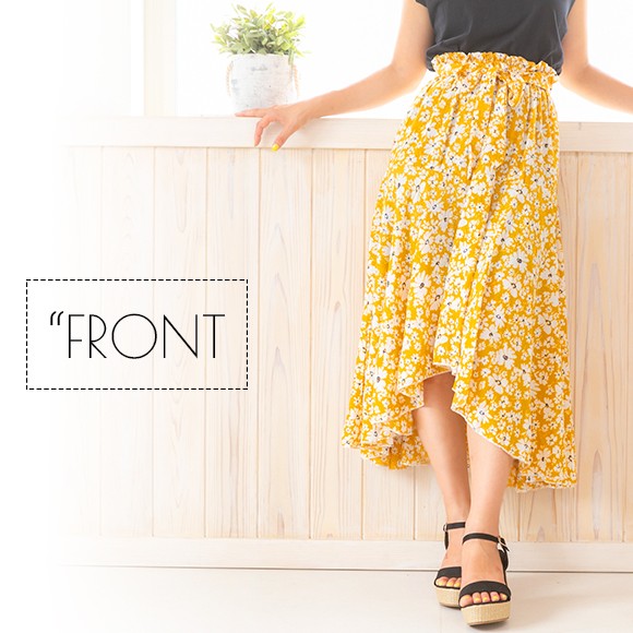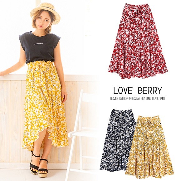 小花柄が散りばめられたイレギュラーヘムフレアスカート☆