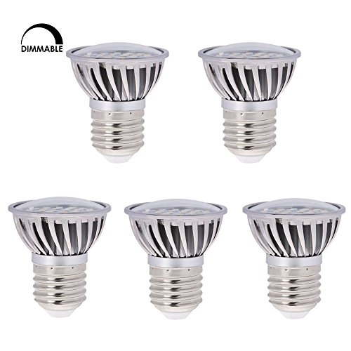 - 5 Pcs PAR16 E26/E27 Short Neck 120V 4.8W Medium Screw Base LED Halogen/Incandescent Replacement Bulbs