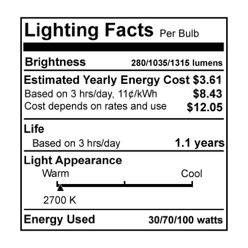 Bulbrite 30/100 3-Way Standard Incandescent A19 Lightbulb, Soft White