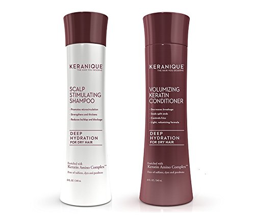 -. Feature : Keranique Deep Hydration Scalp Stimulating Shampoo and Volumizing Conditioner Set is specially formulated to gently deep clean and stimulate the scalp to nourish and rejuvenate the hair follicles and to help thicken and volumize thin, fine hair - without weighing the hair down like traditional heavy conditioners. / This sulfate-free Scalp Stimulating Shampoo is designed especially for thinning hair to gently deep clean and stimulate the scalp to nourish and rejuvenate the hair follicles. / Fortified with Keratin and Panthenol (Pro Vitamin B5), hair feels lighter, cleaner, and more buoyant. Leaves hair ultra-clean as it helps clear away impurities at the follicle to improve the effectiveness of scalp treatments. / Keranique® Volumizing Keratin Conditioner - a special cream-gel formula with a fortifying complex that coats, protects and volumizes fine and thinning hair with a keratin enriched coating. / Designed specifically to help thicken and volumize thin, fine hair - without weighing the hair down like traditional heavy conditioners, it conditions as it adds volume, fullness and thickness. Perfectly balanced to moisturize and detangle without looking or feeling heavy, leaving hair soft, silky and protected.
