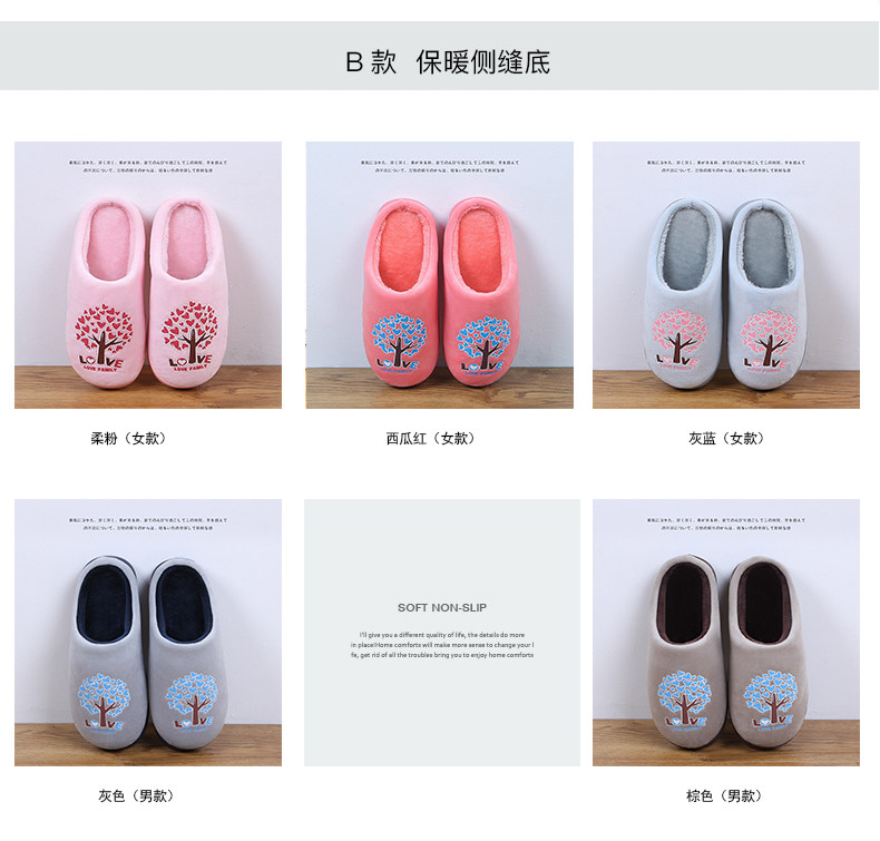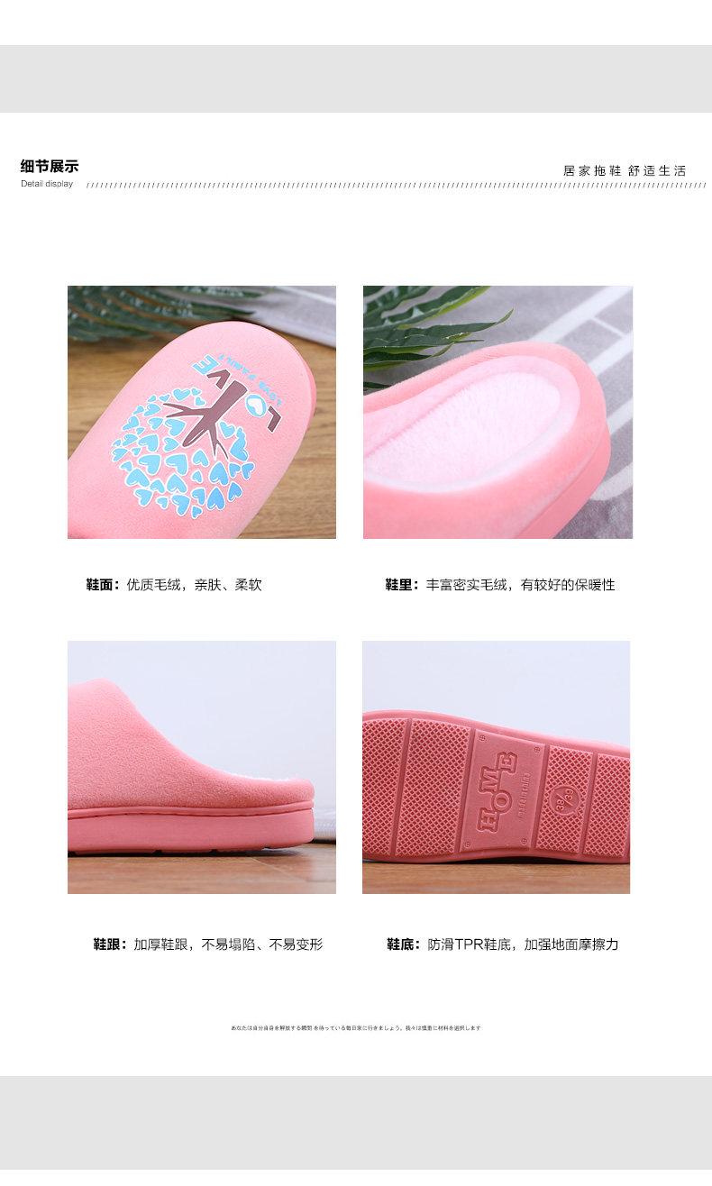 火轮秋冬保暖毛毛拖鞋女保暖月子棉拖鞋女防滑情侣家居厚底拖鞋男