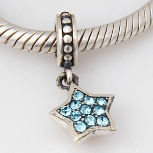 - Title : Everbling Star Dangle with Paved Aquamarine Austrian Crystal March Birthstone Authentic 925 Sterling Silver Bead Fits Pandora Chamilia Biagi Troll Charms Europen Style Bracelets