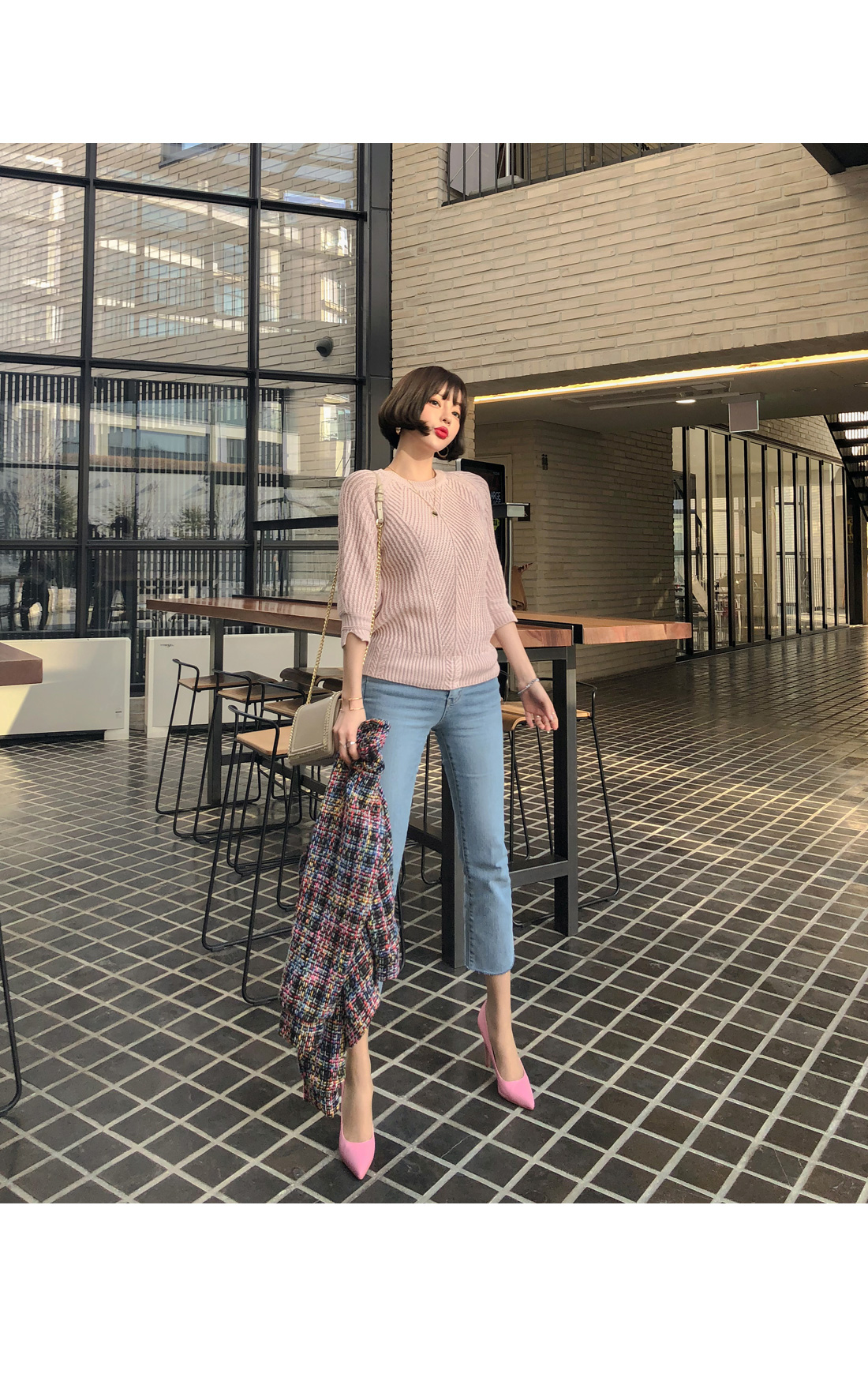 7부 소매 기장으로 지금부터 봄까지 쭉- 즐겨입기 좋구요.