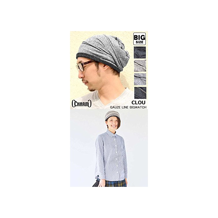 원본상품명: (カジュアルボックス)CasualBox CLOU ガゼ ライン ビックワッチ フリサイズ 夏 サマニット帽 帽子 大きいサイズcharm チャム (Bライトグレ)