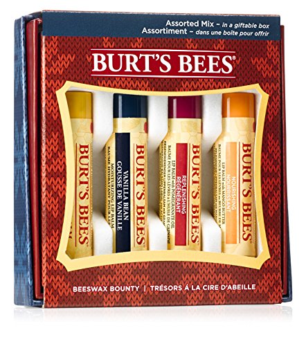 Burt's Bees Beeswax Bounty, Assorted Mix is the must have lip nourishing collection. The Beeswax gift sets come in a giftable box making them perfect for stocking stuffers. Each Burt's Bees Lip Balm Quartet contains 4 replenishing lip balms that naturally help condition lips with beneficial nutrients and amazing flavors. Give the gift of naturally invigorating lip care to someone special this winter and spread a little TLC with Burt's Bees moisturizing lip balms. Durable Product.