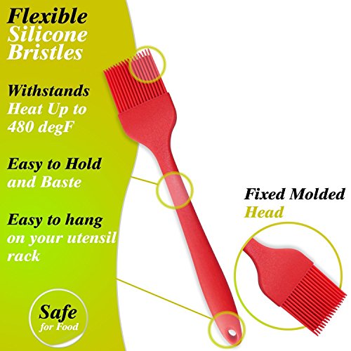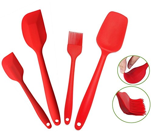 Silcony Set of 4 Pure Silicone Heat Resistant Spatulas, Spoon, Basting Pastry Brush (11"-8.4") Perfect for Baking, Mixing, Flipping, Stirring, Battering, Marinating, Decorating Food & Much More...