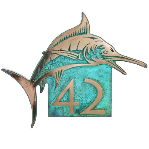 -. Title : Marlin Home Number Plaque 18x14.5 - Raised Bronze Verdi Metal Coated Sign
