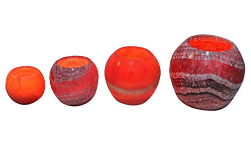 CraftsOfEgypt Egyptian Real Alabaster stone / marble Globe Candle holder votive - stained Red- ALB-100-B