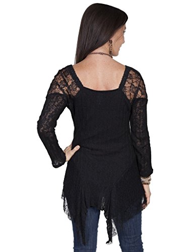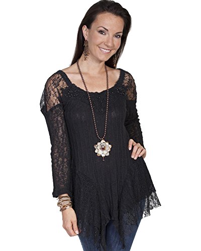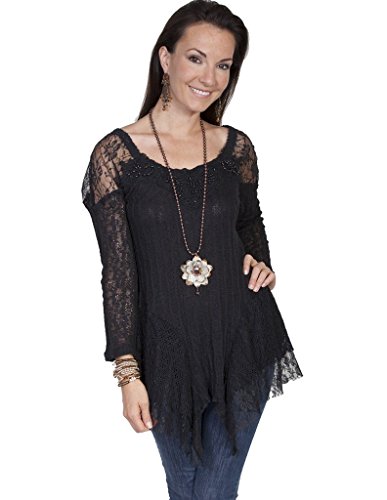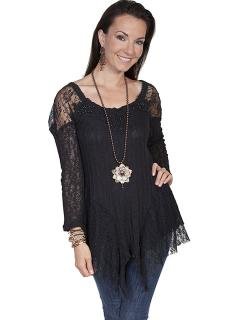 Product DescriptionThis flirty and feminine top can be dressed up or down The ladies' blouse is made of sheer lace with an asymmetrical hemline and alluring scoop neckline.0
