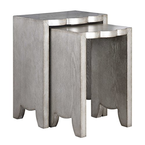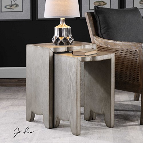 -. Feature : Designer: Jim Parsons / Material: MDF,VENEER / Finish/Frame Description: Featuring Carved Scalloped Tops, These Nesting Tables Make A Great Multi-leveled Side Table. Finished In Burnished Silver Revealing Natural Ash Veneer Wood Grain. / Dimensions: Overall Depth: 14 X Overall Width: 18 X Overall Height: 24 Product Weight: 41.8 lbs.