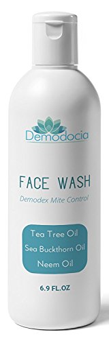 - Demodocia Face Wash penetrates deep into the skin pores and hair follicles to eliminate demodex mites with a proprietary blend of Tea Tree Oil, Sea Buckthorn Oil, and Neem Oil among other natural ingredients.