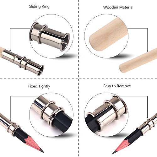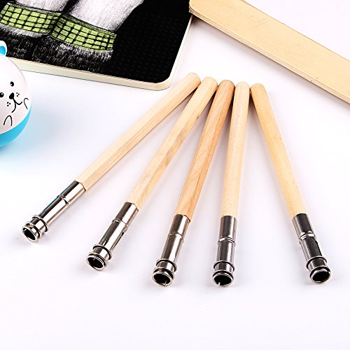 GTHER 5PCS Wooden Handle Pencil Extender Holder Pencil Lengthener Tool Adjustable Top for School Art Writing