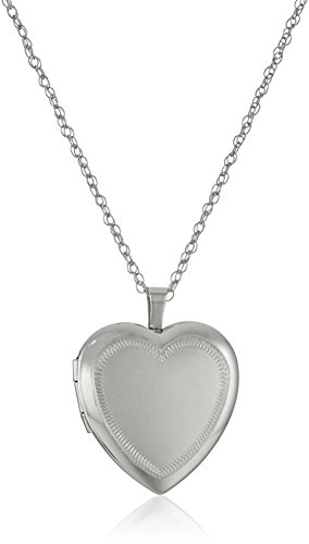 Sterling silver hand engraved heart-shaped locket with satin center and polished edge with extra long 30" chain