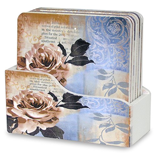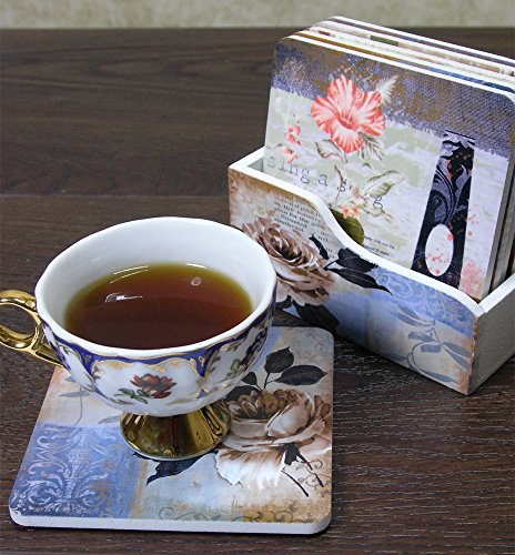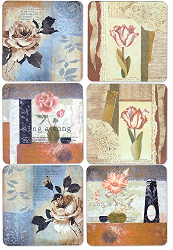 - FLORAL COASTERS. SET of 6 DECORATIVE COASTER WITH HOLDER SET each with a unique colorful painting of flowers theme design. Features vintage ornate patterns.