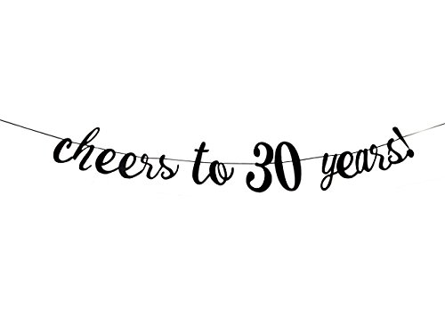 Black Color "Cheers to 30 Years" Banner - Happy 30th Birthday Party Decorations - 30th Wedding Anniversary Decorations