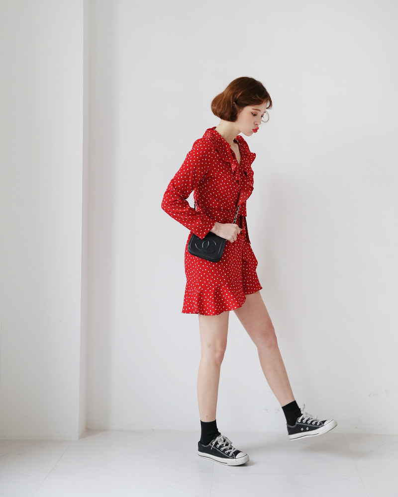 - ネック、裾のフリルディテールでラブリーさをよりいたします