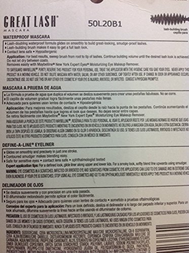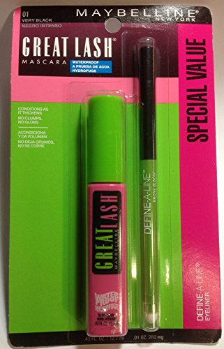 -. Binding : Misc. -. Brand : Maybelline New York -. EAN : 0041554423761 -. Feature : Maybelline Great Lash Mascara Very Black Waterproof with bonus Define a Line Eyeliner Ebony Black / Maybelline Great Lash Mascara Very Black Waterproof / Define a Line Eyeliner Ebony Black. -. Label : Maybelline -. Manufacturer : Maybelline -. MPN : 1 -. NumberOfItems : 1 -. PackageQuantity : 1 -. PartNumber : 1 -. ProductGroup : Beauty -. ProductTypeName : BEAUTY -. Publisher : Maybelline -. Studio : Maybelline -. Title : Maybelline Great Lash Mascara Very Black Waterproof with Bonus Define a Line Eyeliner Ebony Black. -. UPC : 041554423761