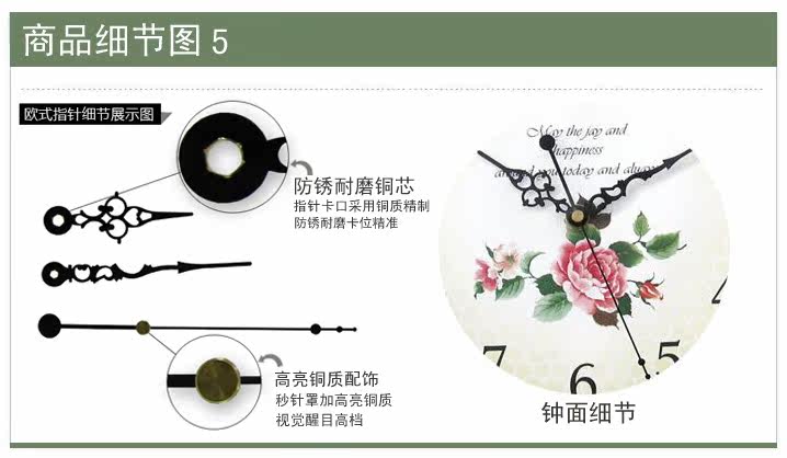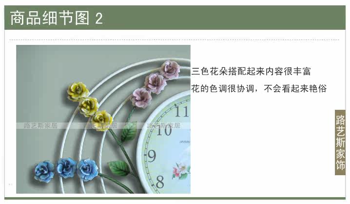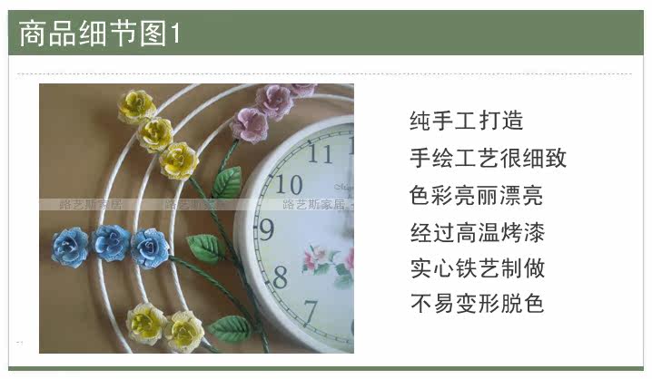 Material: solid iron, metal, glass Dimensions: Height 42cm, width 46.5cm, bell outer diameter of 27cm, 23cm glass surface Movement: King brand Quiet Movement Technology: high temperature paint + hand-painted, Do not use alkaline batteries, use carbon batteries