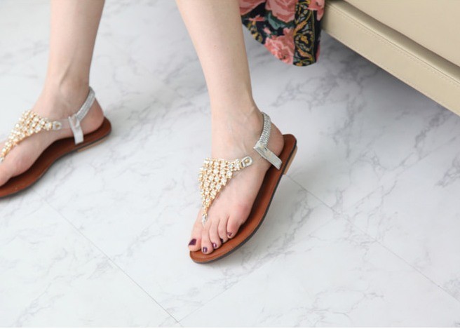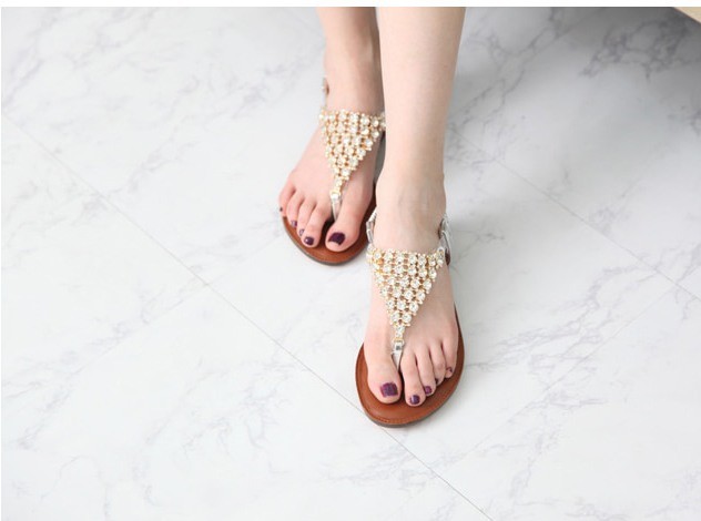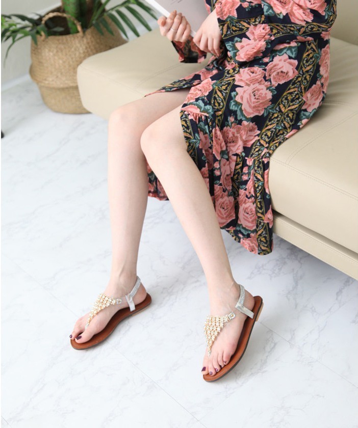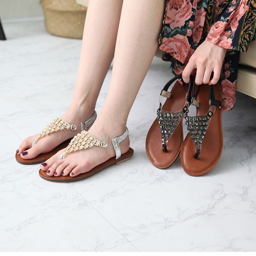 商品名:サンダル レディース ビジュー キラキラ トングサンダル ペタンコ フラットサンダル 2018 春 ファッション 靴 婦人靴