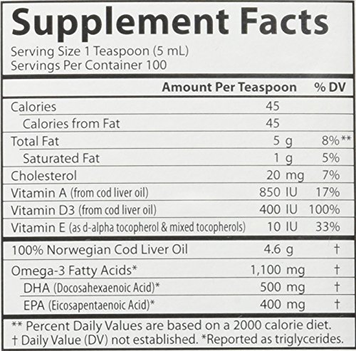 Carlson Labs Cod Liver Oil Nutritional Supplement, Lemon, 16.9 Fluid Ounce