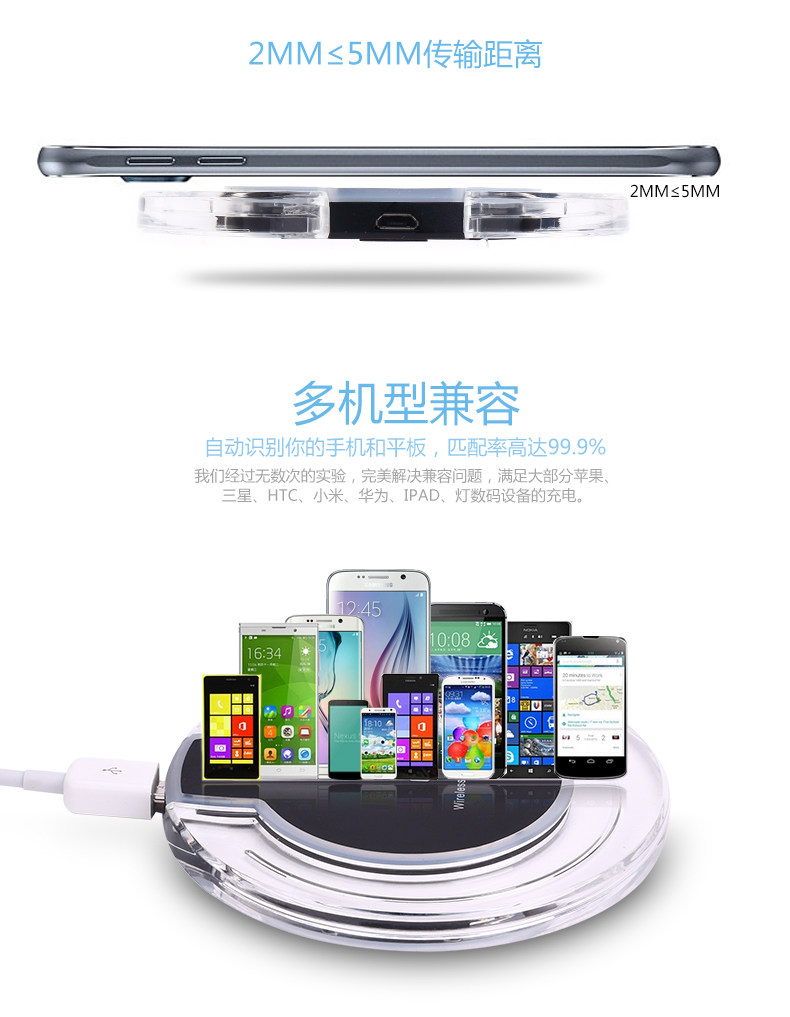 Qi Standard Transparent Round Appearance Wireless Charging Pad.