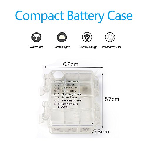 - Waterproof outdoor string lights: The copper wire is fully sealed, thus making it submersible, you can put the wire parts into water fountain to create amazing water scene. Don't put the battry box under water directly.