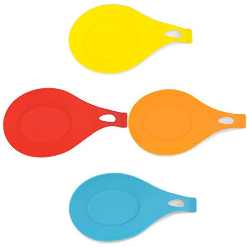 -. Feature : 4 pcs/set Kitchen Heat Resistant Silicone Spoon Rest Utensil Spatula Holder Kitchen Tool set of 4 / Color: blue / yellow / orange / red.beautiful and durable,a must have kitchenware and also a nice gift for friends and family members. / Material: Food Grade Silicone,BPA-free,Non-toxic and tasteless, safe and environmentally friendly,with LFGB & FDA standards. / Size: 19.5 x 9.5cm/ 7.68'' x 3.74''(Approx.). / package content:4 pcs/set silicone spoon rests.