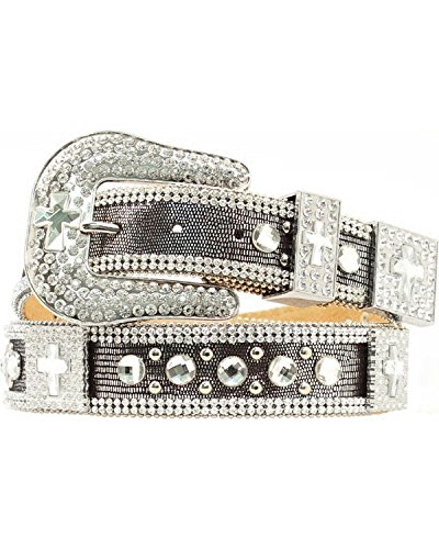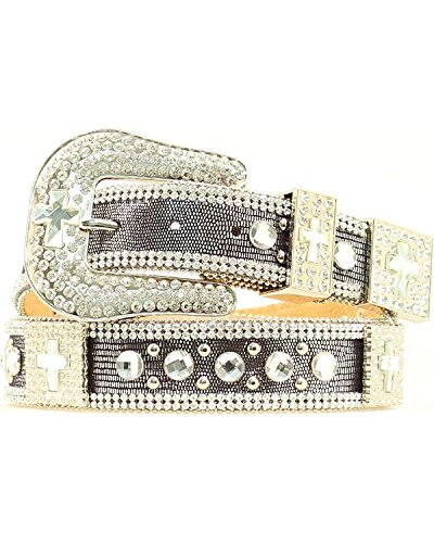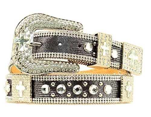 Studio : Nocona Publisher : Nocona Binding : Apparel Product Description Nocona bling belts look great - whether on the dance floor or in the rodeo arena Genuine leather belt features metallic silver dotted pattern throughout, sparkly rhinestones and fancy conchos. Belt measures 1 1/2" wide. Imported. Sizes: S(28-30), M(32-34), L(36-38), XL(40-42). 0
