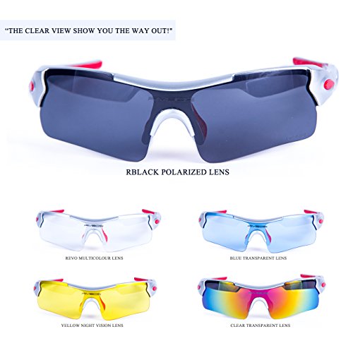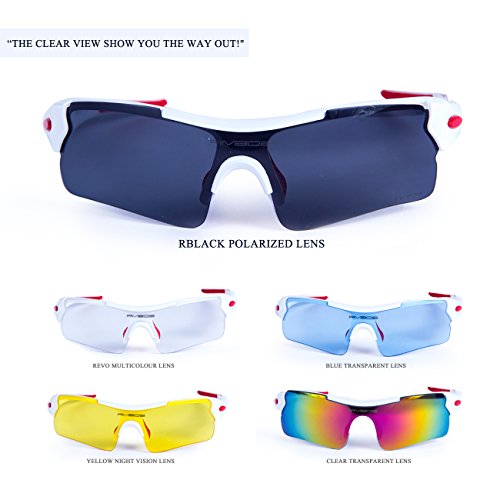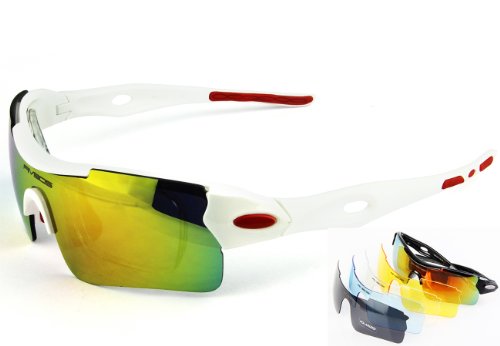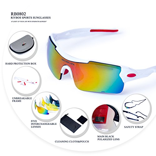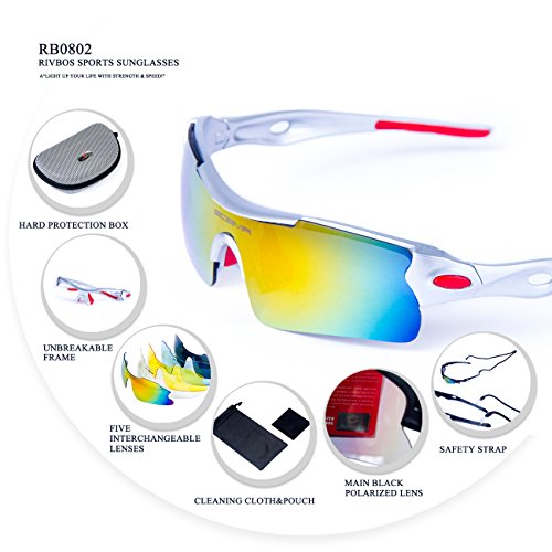 Product Description RIVBOS Sport Sunglasses Are Designed for Driving, Cycling and all Outdoor Activities. Lens Made of Shatterproof Unbreakable PC Material are Durable Enough for Long Time Using Only The Main Black Lens is Polarized Lenses Against Strong Sunlight, the Other 4 Lens are Colored Sunglasses for Different Environmental Condition. Come With an Elastic Sport Belt Which You can Interchange it As and When You Like it to be Strap or Bow. More Comfortable With Spare Rimmed Soft Rubber Pad. Nice, Trendy and Cool to Wear. Come With Hard Protection Box, Special Design for this Fashion Glasses Kit, Lined With Sponge. 1* Sport Glasses Frame 5* Lenses(The Black One is Polarized Len) 1* Hard Protection Box 1* Elastic Sport Belt 1* Lenses Pouch 1* Cleaning Cloth 1* Movement Head Harness 0
