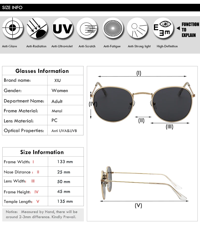 Lens Function:100% UV400 Protection Against Harmful UVA/UVB Rays