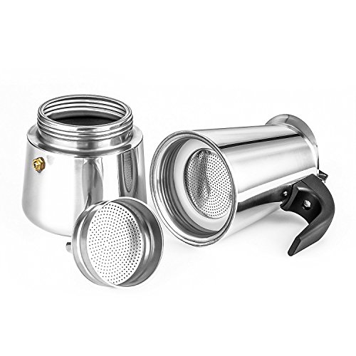 Classic Italian method of brewing espresso.Exquisite design with elegant appearance,Lightweight and easy to use! Just simply add water,add coffee,apply to the stove and you have coffee in minutes.Perfect for Home, restaurant, hotel, office, camping and outdoors.