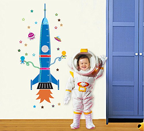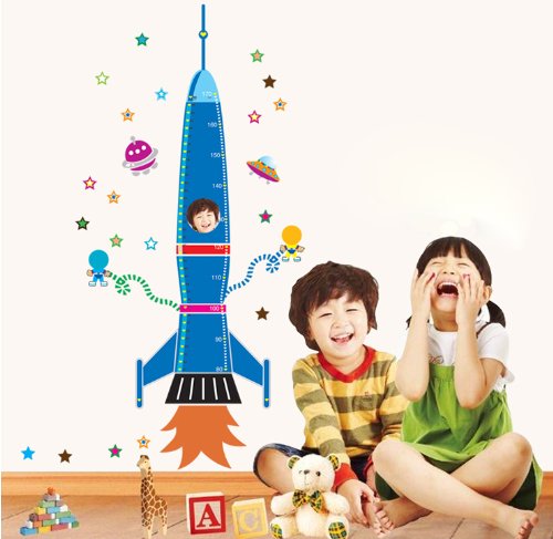 ufengke® Cartoon Rocket Spaceship and Extraterrestrial DIY Height Chart Decals(80-170cm)(31in-60in), Children's Room Nursery Removable Wall Stickers Murals