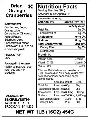 Sincerely Nuts Dried Orange Cranberries - One Lb. Bag –Appetizing Orange Infusion - Ready to Eat, Loaded with Nutrients - Insane Freshness - Kosher Certified