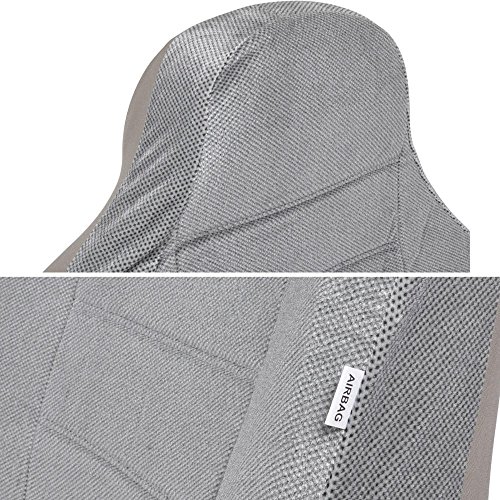 - Feature : Double Stitched Seams for added durability / Fits most vehicles, please check compatibility chart or contact us / Includes: Front High Back Bucket Seat Covers, Rear Bench Covers (Split Top/Bottom) and 3 Separate Headrest Covers / Air Bag Safe with Arm Rest Slot (Velcro) / Includes: 2 pc buckets, 5 pc bench
