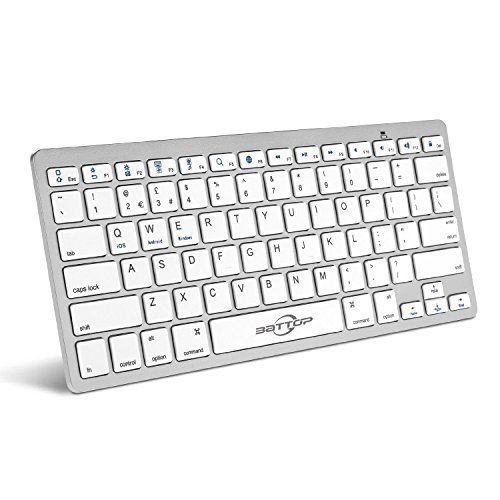 BATTOP Universal Ultra Slim Bluetooth Keyboard Support iOS/iPad/Mac/Androis/Windows Tablet Devices/Smartphone (Silver/White)