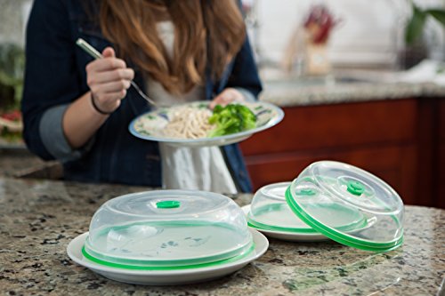 Light Weight and Durable, BPA free, Dishwasher safe, microwave oven safe (release airtight button before use), Stackable for easy storage. Dimension: 9" (W) x 2.5" (H) for 10.5" diner plate & 7" (W) x 2" (H) for 7.5" desert plate