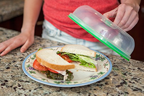 Press n Fresh Platter works with plates, large serving platters, skillets, and bowls, or even on counter-top, allowing you to quickly seal-up and store away fruits, vegetables, prepared food or the remains of a meal.