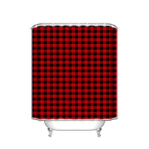 EZON-CH Customize Waterproof Rustic Red Black Buffalo Check Plaid Pattern Print Polyester Fabric Bathroom Shower Curtain 60x72IN