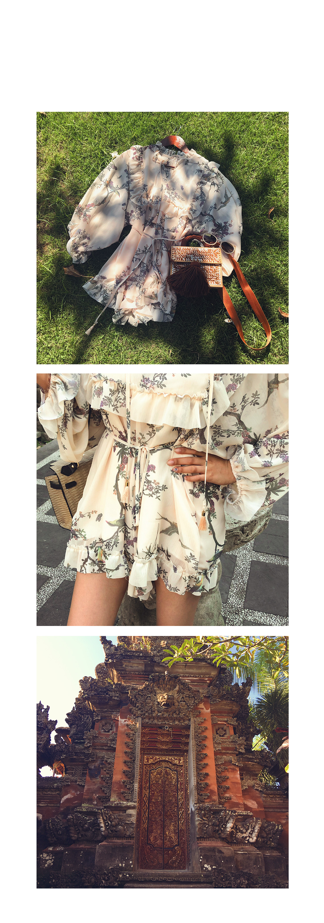 네크라인과 암홀부분, 그리고 밑단에 프릴 디테일을