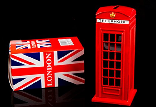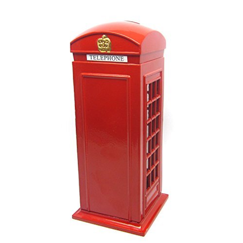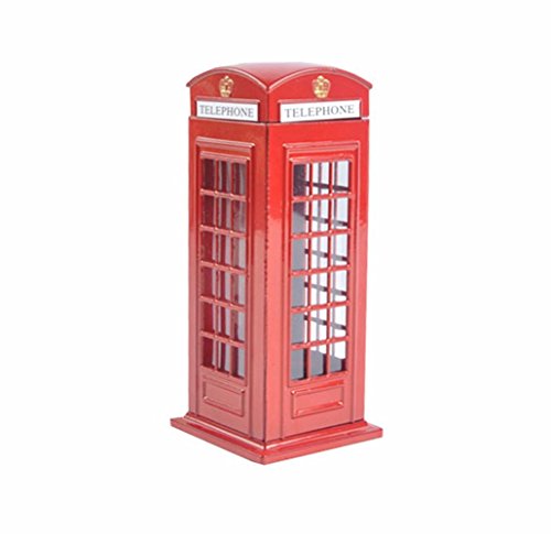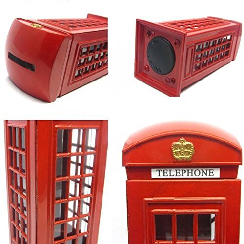 BeeSpring Attractive Metal Alloy Money Coin Spare Change London Street Red Telephone Booth Bank Box-