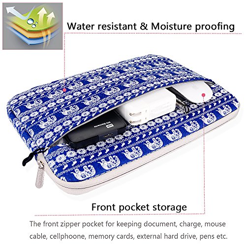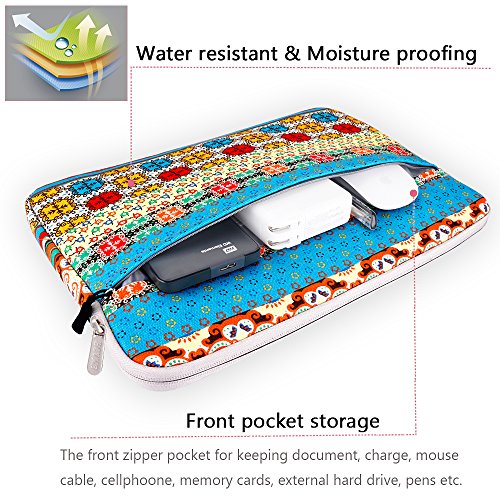 -. Feature : FASHION BOHEMIAN STYLE PERFECT GIFT - Personalize your laptop with its own unique style. Emphasizing the aesthetics and safety of your laptop computer at the same time in the design. / WATER RESISTANT & MOISTURE PROOFING - Made of waterproof Canvas fabric,which obstructs water and vapor effectively. Don't worry about getting your laptop computer and accessories wet from splashing water or rain. You can just place the case right by your side when having coffee, tea or juice. And securely carry the case with you even if you come across a rainy day. / FRONT POCKET STORAGE & QUALITY ZIPPER - Extra pocket in front, enough space to keeping document, charge, mouse cable, cellphoone, memory cards, external hard drive, pens etc. Top-loading zipper on the sleeve glides smoothly and allows convenient access to your laptop. / SHOCKPROOF FLUFFY FLEECE FABRIC LINING - Extra soft,The anti-static, Featuring three layers' protection with waterproof layer, shockproof layer and fluffy fabric inner layer, the product can effectively absorb impacts and reduce damages caused by accidentally bumping, and protects your notebook from scratches. / ABOUT THE SIZE AND COMPATIBLE - Size: Exterior: 12.8" x 1.2" x 9.1" & Interior: 12.5" x 1" x 8.6". Compatible with MacBook Air 11.6 / New Macbook 12 inch / Surface Pro 4,3 / Acer / Asus / Dell / Fujitsu / Lenovo / HP / Samsung / Sony / Toshiba, suitable for Acer C720 Chromebook/ Acer Aspire E3-111 / Asus X205TA / ASUS Q200E / HP Stream 11 Laptop / HP Pavilion X2 / Samsung Chromebook XE303C12. Due to variations in the sizes of different models. please check the dimension before purchase.