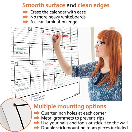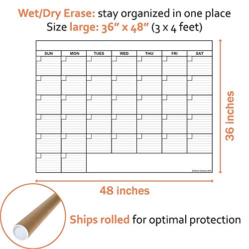 ✓ LARGE WALL CALENDAR DESIGN: The 36x48 inch (3x4 feet) calendar features extra large 5x6 inch day squares that maximize your writing area. This new and updated design is perfect for home or office use and the clean lamination edge ensures a professional presentation.