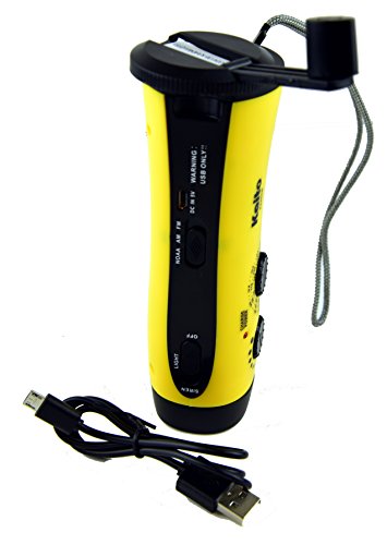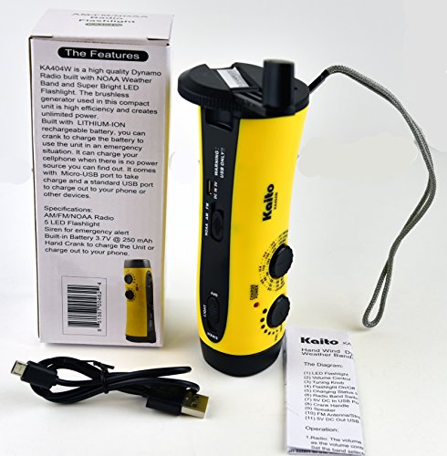 Kaito KA404W Emergency Hand Crank Dynamo 5-LED Flashlight with AM/FM/NOAA Weather Radio With Cellphone Charger and Built-in Lithium Rechargeable Battery (Yellow)
