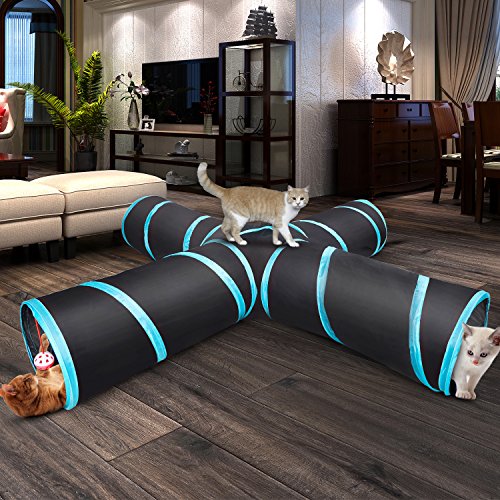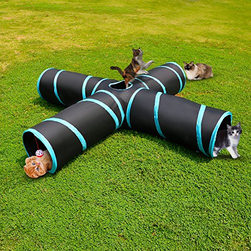 Studio : Creaker Publisher : Creaker Binding : Misc. Product Description Engages cat's instincts Tunnels appeal to cats' natural instinct to hide in mysterious places; enclosed spaces offer security and shelter from predators while they stalk their prey. (nb. "Prey" is usually a passing owner / slave's foot). Some cats nap inside for warmth while nervous kitties can use it to escape from possible attention. Others just love sprinting through and playing 'hide and pounce' with their siblings or toys. We've built on the instinctual appeal by adding a crinkly centre 'peep hole' which allows for multi-cat play and creates intriguing noise. Exercise and Play We all know that exercise is key to a happy, healthy cat. But it's often easier said than done when they get bored of the same toys. Combine this tunnel with cat charmers, treats, balls or toys for a whole new level of fun that will have your cat stalking, pouncing and racing about to burn off those calories. Collapsible with storage bag (included) to save a lot of space. Want to have fun with your kitty but don't want your house permanently cluttered with cat trees or condos? This is ideal, collapsible in just seconds and packs down to just 5cm high. As the centre is flexible, the tunnels can be moved around to fit any room. Features: Camouflage pattern, adorable and stylish Foldable tunnel, save space and easy to carry With a Bell Toy a Soft Ball Toy, add more fun Package content : 4 Way Pet Cat Tunnel*1 0