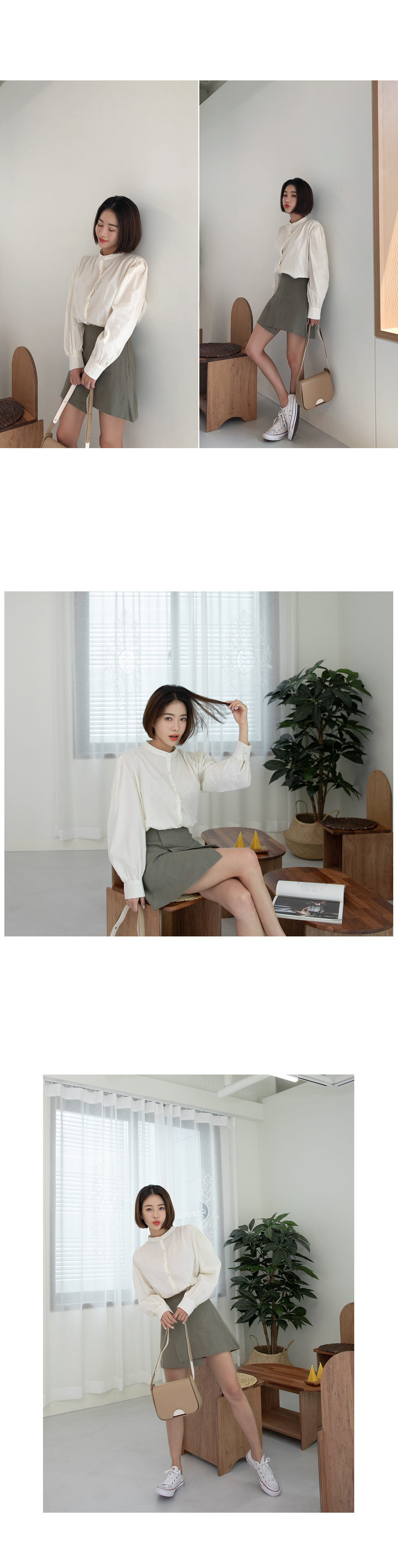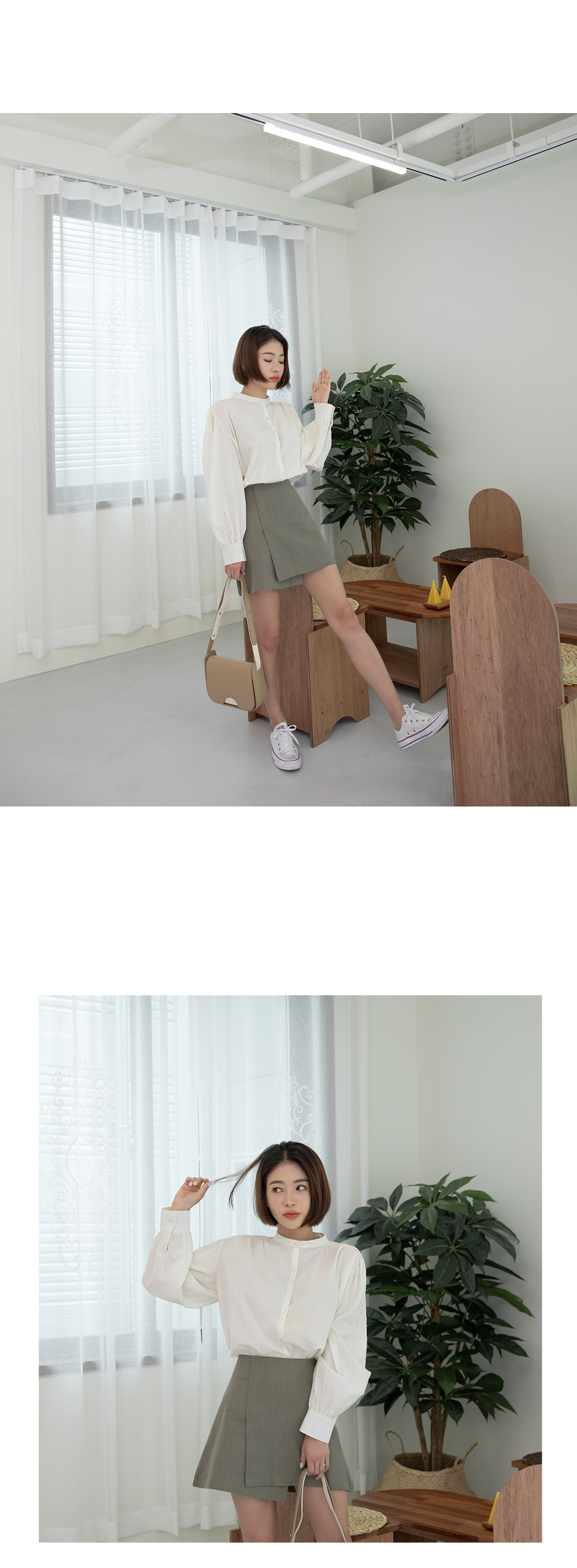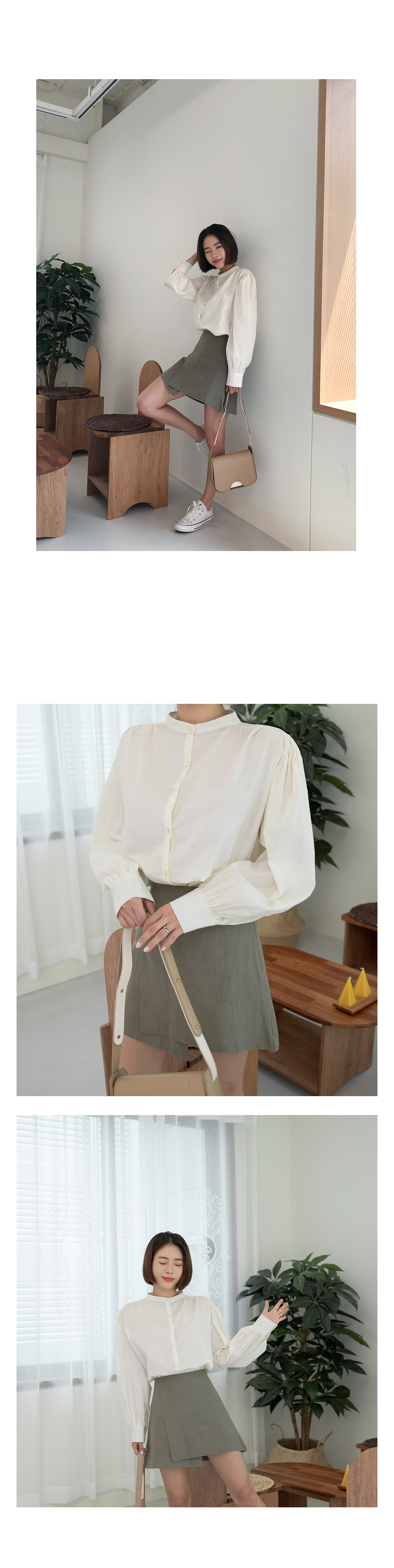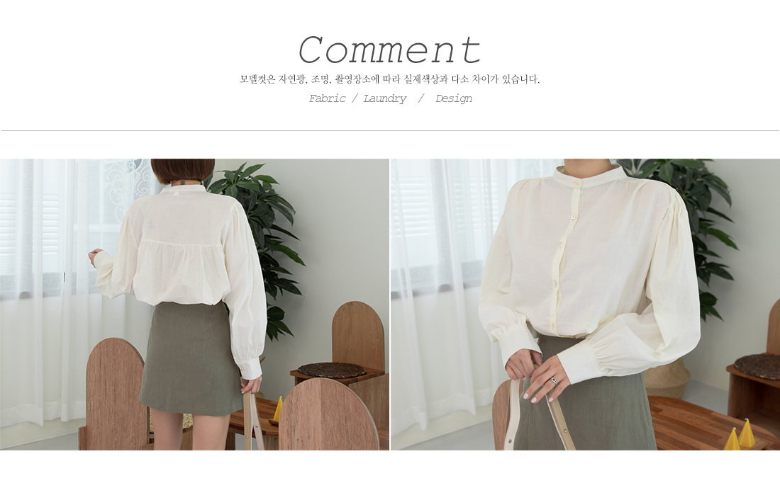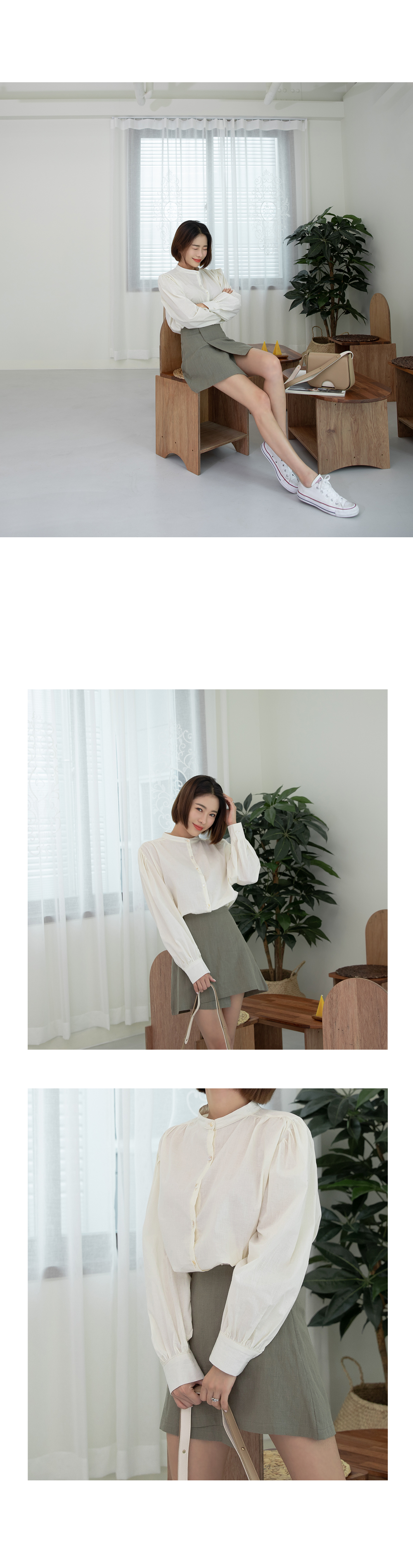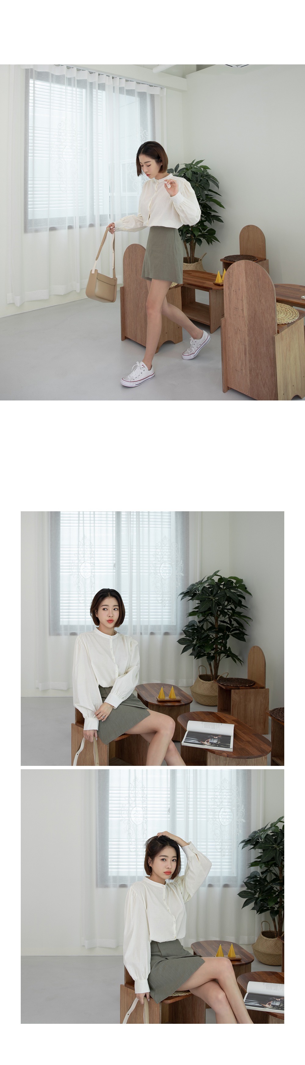 차이나넥으로 깔끔하며 벌룬소매와 어깨에 살짝 들어가있는 셔링이 포인트에요~