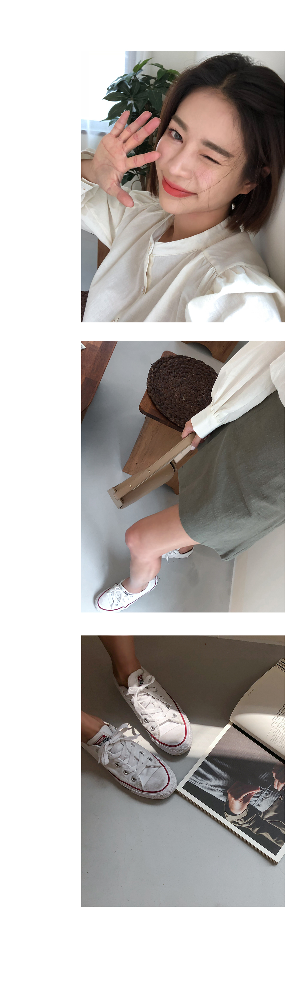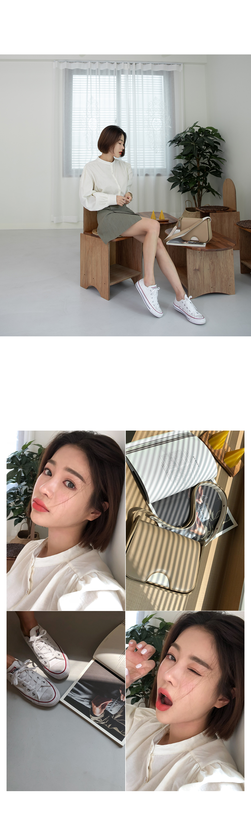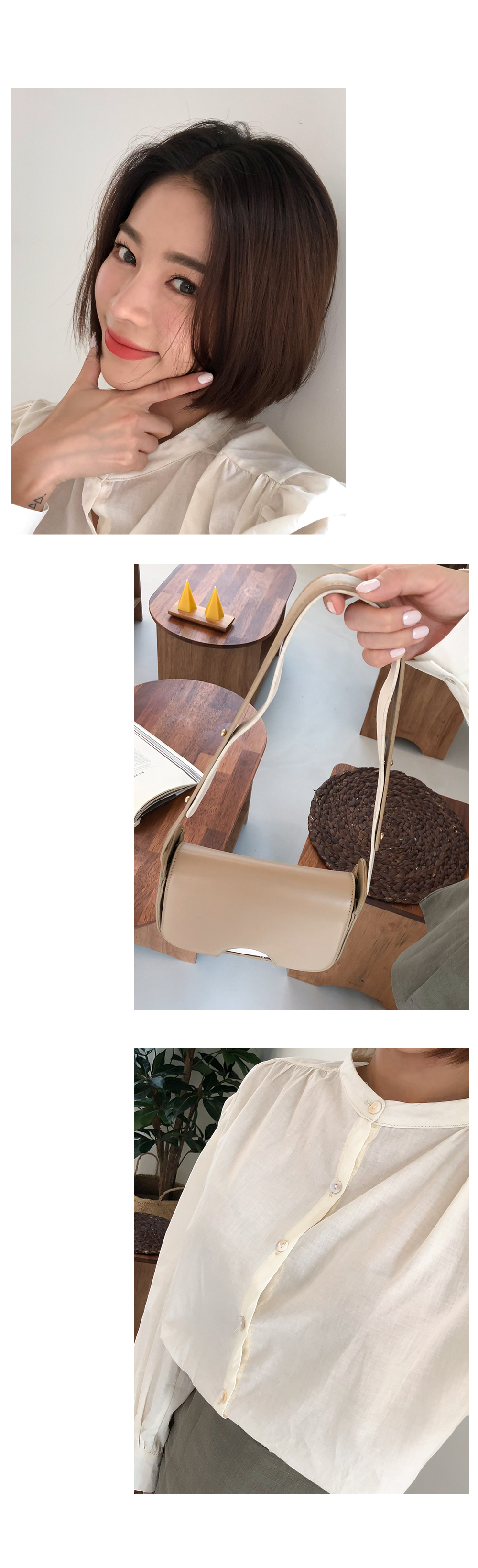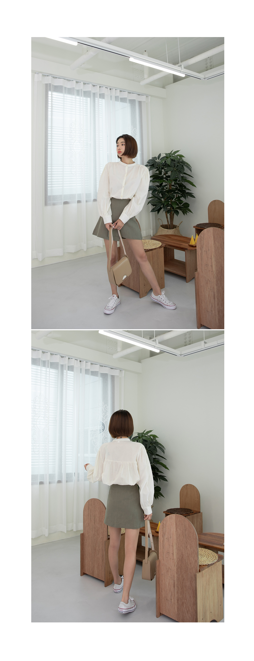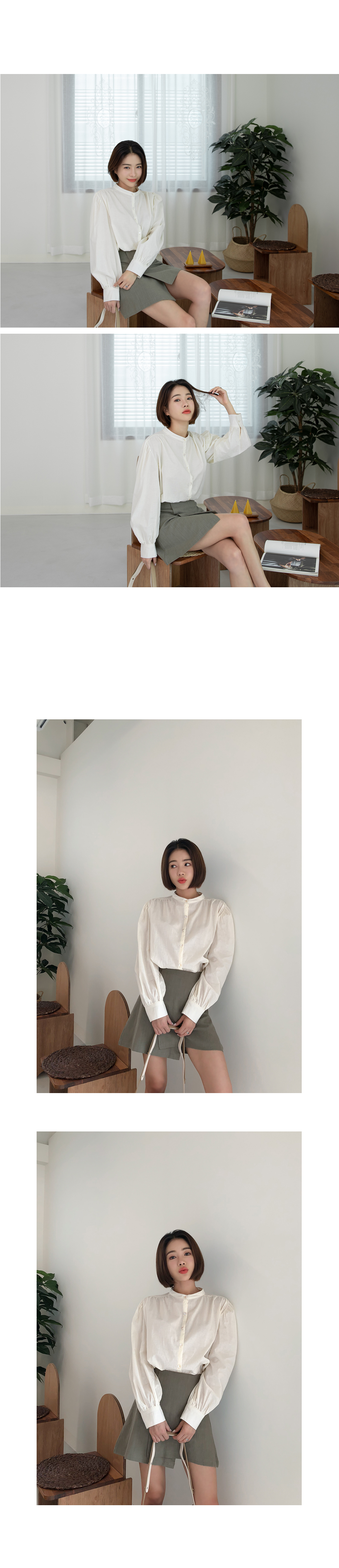 차이나넥으로 깔끔하며 벌룬소매와 어깨에 살짝 들어가있는 셔링이 포인트에요~
